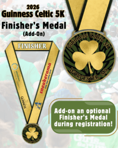 Participants may choose to add on a Finisher’s Medal – simply select the “5K WITH MEDAL” option during registration to secure your medal, which can be picked up after the race at the finish line.