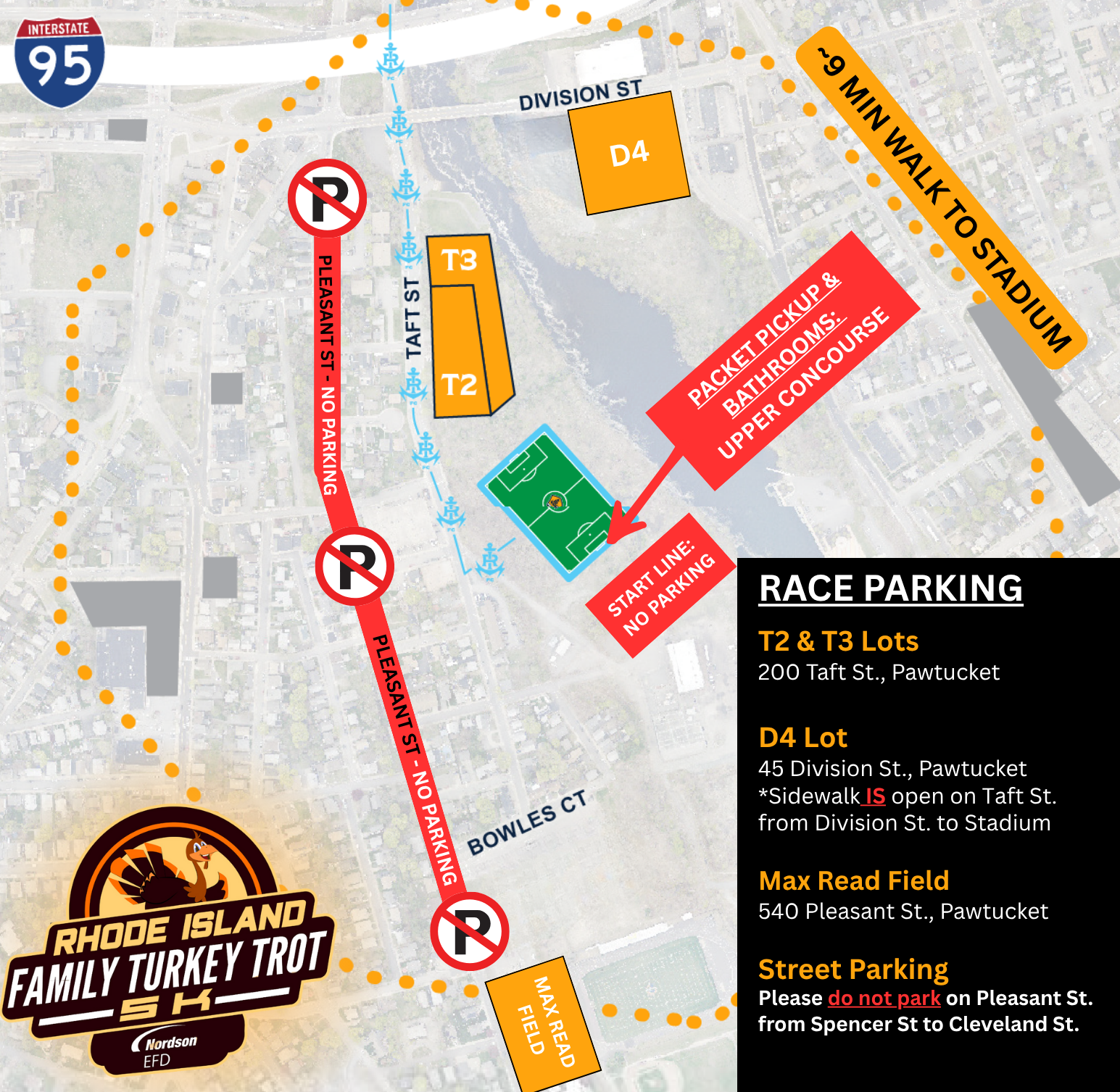 The Rhode Island Family Turkey Trot 5K and Youth Trot, presented by Nordson EFD, will be held at Centreville Bank Stadium located at 11 Tidewater St. in Pawtucket, Rhode Island on Thanksgiving Day Morning November 27, 2025 at 10:00 a.m., with a Kids Trot at 9:30am.